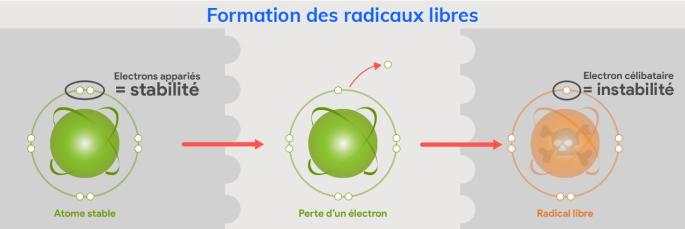 Un radical libre est une molécule ou un atome doté d’un électron solitaire, qui cherche une réaction.